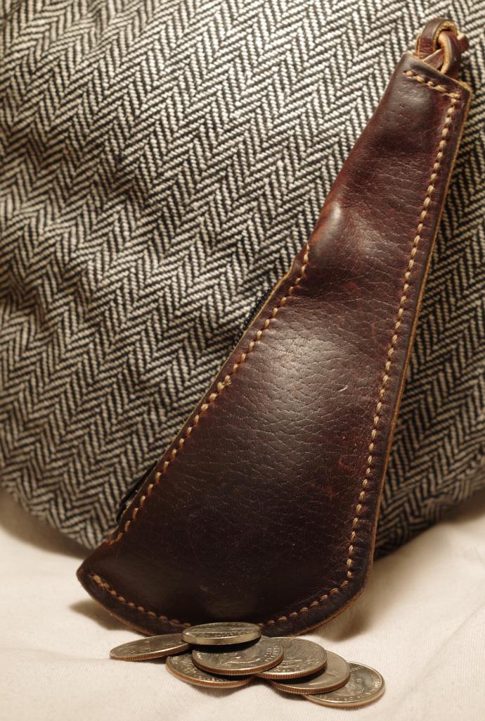 This Todd Foster coin sap is very ‘sap’ like in design, as is another I have not pictured. Both can be easily carried in the rear pocket and deployed in an identical fashion to a conventional sap. These purses are also relatively easy to actually use for their intended purpose of carrying coins and accessing coins from them is not too difficult.
